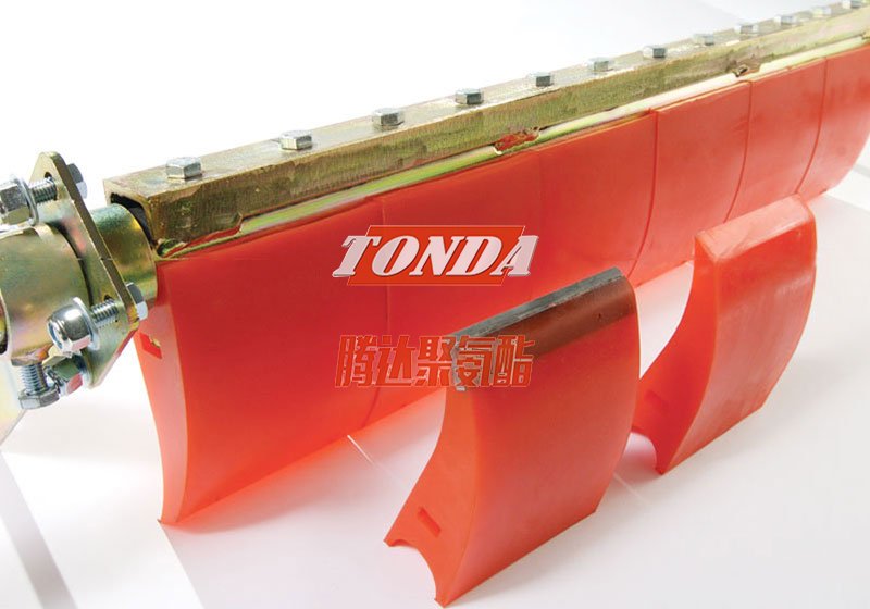 聚氨酯刮刀也称聚氨酯清扫器,采用高耐磨聚氨酯材料浇注成型制作。是清扫器设备的产品。